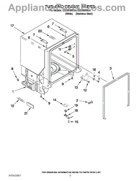 Parts for Whirlpool IUD8000WS4: 05 - Tub And Frame Parts