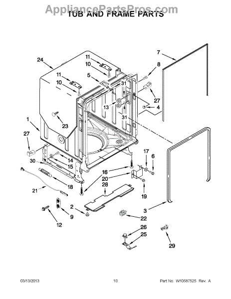 The door balance mount is the side-frame bracket that supports the dishwasher's door counterbalance system. When worn or broken, it can let the door drop, slam, bind, or feel heavy. Replacing it restores smooth, controlled door movement. What it does