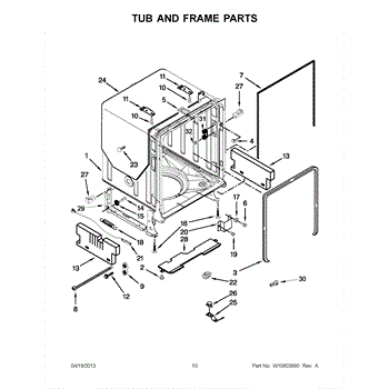 The primary causes of wear or damage to the tub wheel assembly can include regular use, excessive load on the racks, or accidental force applied when loading or unloading dishes. These can lead to broken wheels or dislodged fittings, necessitating replacement to maintain functionality.
