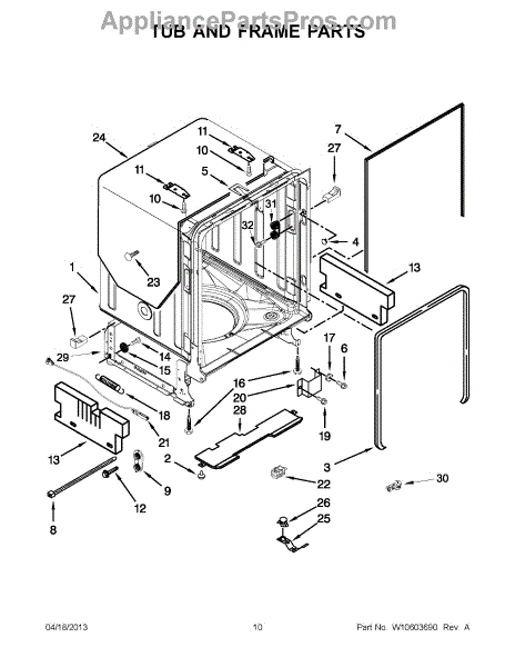 The door balance mount is the side-frame bracket that supports the dishwasher's door counterbalance system. When worn or broken, it can let the door drop, slam, bind, or feel heavy. Replacing it restores smooth, controlled door movement. What it does