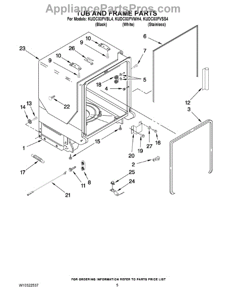 The Gasket is an OEM part for Whirlpool dishwashers. This gasket seals the gap between the dishwasher door and the main tub, preventing water from leaking out during the wash cycle. It ensures a watertight seal that helps maintain the efficiency and performance of the dishwasher.