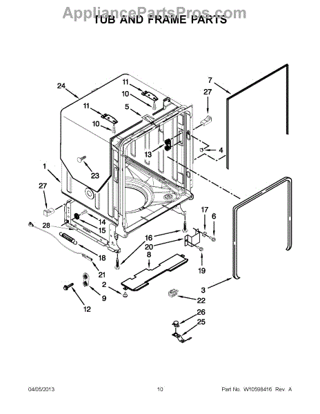 The door balance mount is the side-frame bracket that supports the dishwasher's door counterbalance system. When worn or broken, it can let the door drop, slam, bind, or feel heavy. Replacing it restores smooth, controlled door movement. What it does