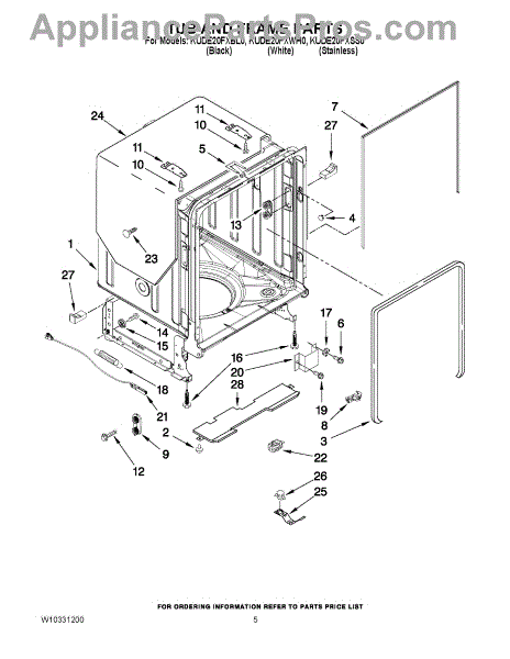 Parts for Kitchenaid KUDE20FXSS0: 05 - Tub And Frame Parts