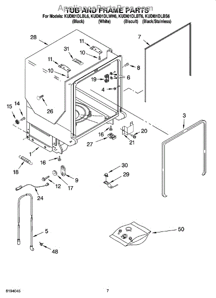 Parts for Kitchenaid KUDI01DLBT6: 07 - Tub And Frame Parts