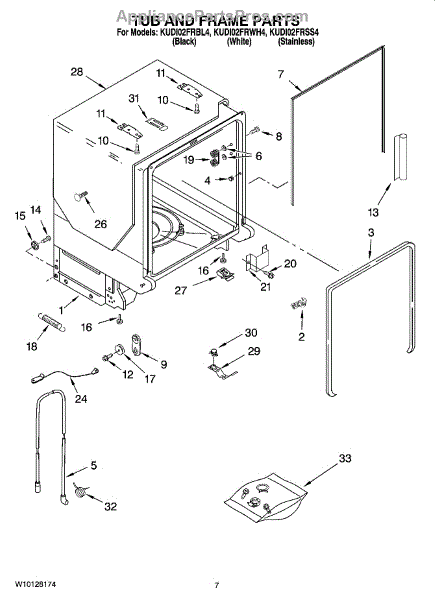 Parts for Kitchenaid KUDI02FRSS4: 07 - Tub And Frame Parts
