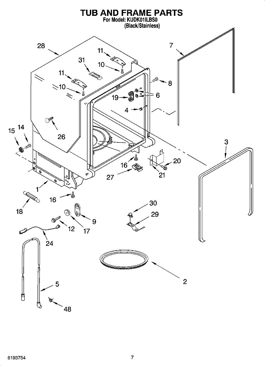 Seals the dishwasher tub to the cabinet opening, reducing noise and preventing gaps. Replace if worn, damaged, or missing for proper fit and sound control.