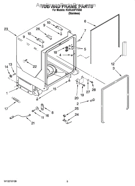 The Gasket is an OEM part for Whirlpool dishwashers. This gasket seals the gap between the dishwasher door and the main tub, preventing water from leaking out during the wash cycle. It ensures a watertight seal that helps maintain the efficiency and performance of the dishwasher.