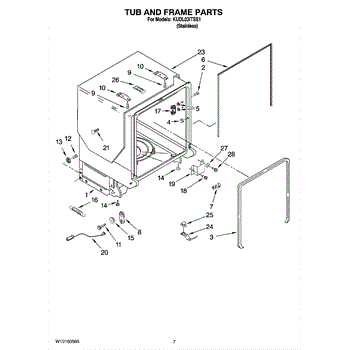 The Gasket is an OEM part for Whirlpool dishwashers. This gasket seals the gap between the dishwasher door and the main tub, preventing water from leaking out during the wash cycle. It ensures a watertight seal that helps maintain the efficiency and performance of the dishwasher.