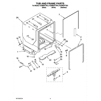 The Gasket is an OEM part for Whirlpool dishwashers. This gasket seals the gap between the dishwasher door and the main tub, preventing water from leaking out during the wash cycle. It ensures a watertight seal that helps maintain the efficiency and performance of the dishwasher.