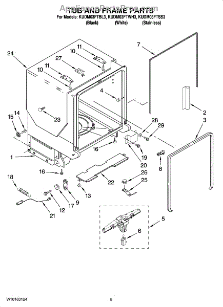 The door balance mount is the side-frame bracket that supports the dishwasher's door counterbalance system. When worn or broken, it can let the door drop, slam, bind, or feel heavy. Replacing it restores smooth, controlled door movement. What it does