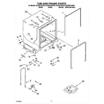 Parts for Kitchenaid KUDP01DLWH6: 07 - Tub And Frame Parts