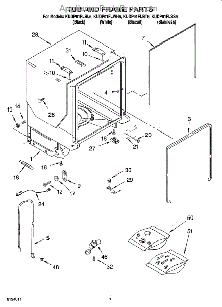 Parts for Kitchenaid KUDP01FLWH6: 07 - Tub And Frame Parts