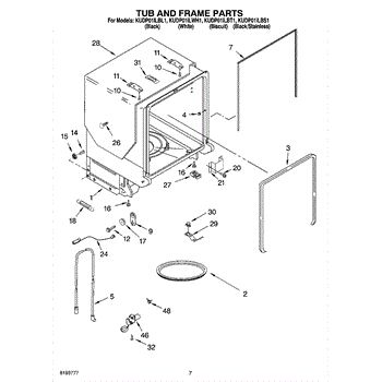 Parts for Kitchenaid KUDP01ILBT1: 07 - Tub And Frame Parts