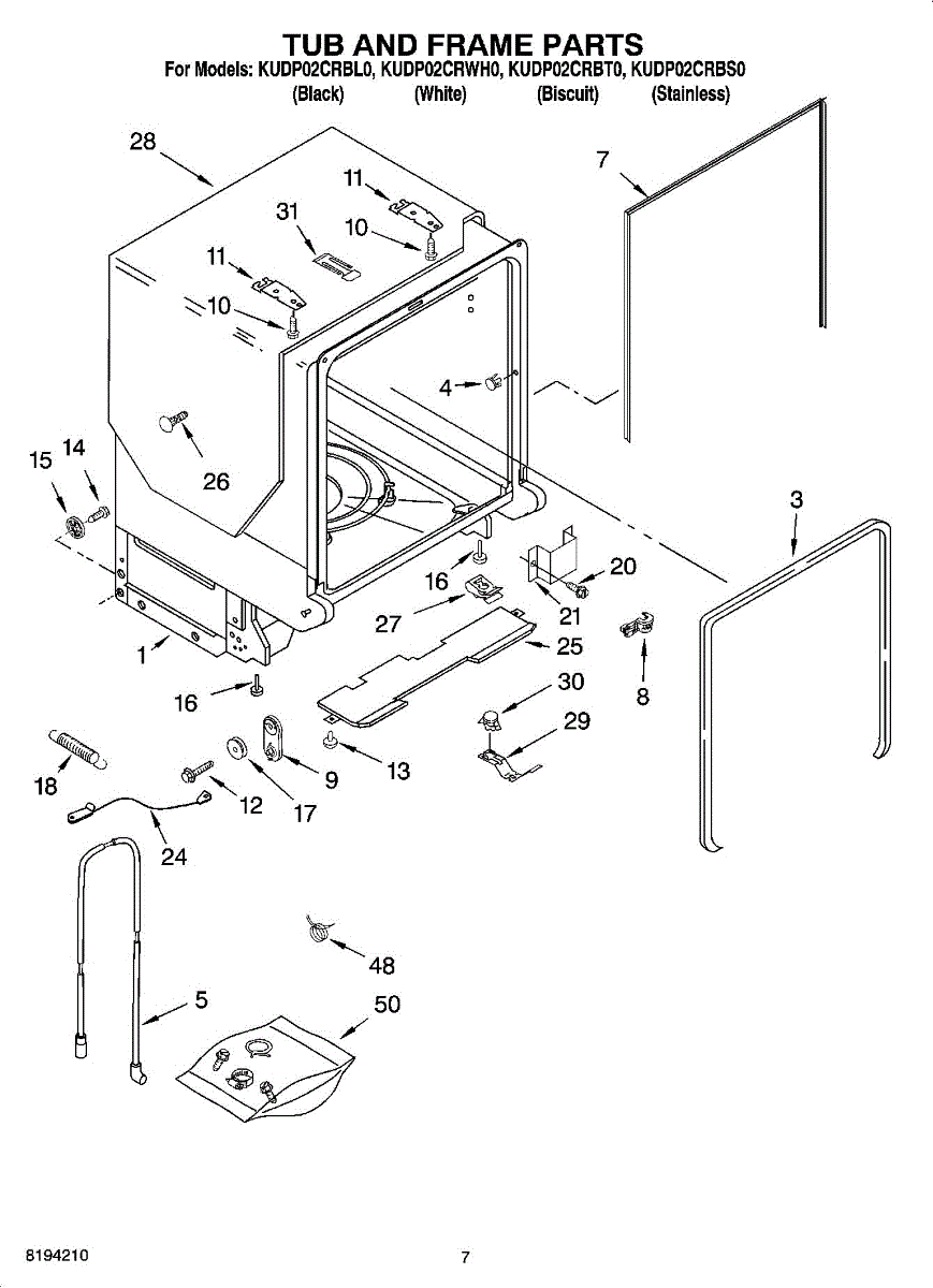 Seals the dishwasher tub to the cabinet opening, reducing noise and preventing gaps. Replace if worn, damaged, or missing for proper fit and sound control.