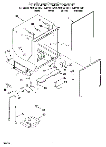 Parts for Kitchenaid KUDP02FRWH1: 07 - Tub And Frame Parts