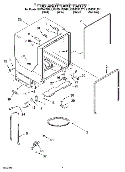 Parts for Kitchenaid KUDS01FLWH1: 07 - Tub And Frame Parts
