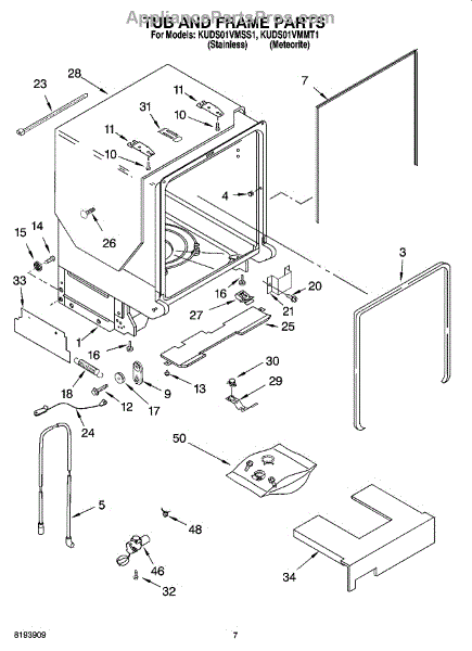Parts for Kitchenaid KUDS01VMMT1: 07 - Tub And Frame Parts