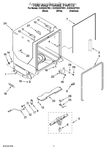 The Gasket is an OEM part for Whirlpool dishwashers. This gasket seals the gap between the dishwasher door and the main tub, preventing water from leaking out during the wash cycle. It ensures a watertight seal that helps maintain the efficiency and performance of the dishwasher.