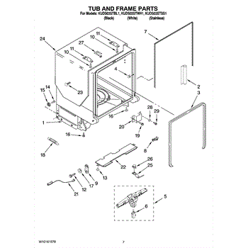 The Gasket is an OEM part for Whirlpool dishwashers. This gasket seals the gap between the dishwasher door and the main tub, preventing water from leaking out during the wash cycle. It ensures a watertight seal that helps maintain the efficiency and performance of the dishwasher.