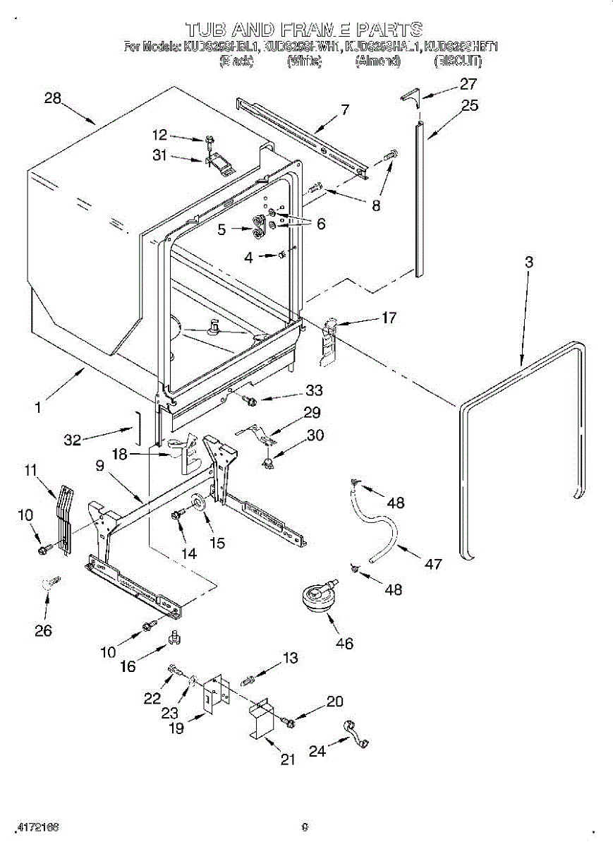 Parts for Kitchenaid KUDS25SHBL1: 08 - Tub And Frame Parts