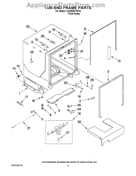 Parts for Kitchenaid KUDS50FVPA2: 05 - Tub And Frame Parts