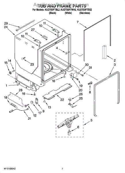Parts for Kitchenaid KUDT03FTSS2: 07 - Tub And Frame Parts