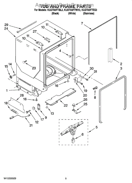 Parts for Kitchenaid KUDT03FTWH3: 05 - Tub And Frame Parts