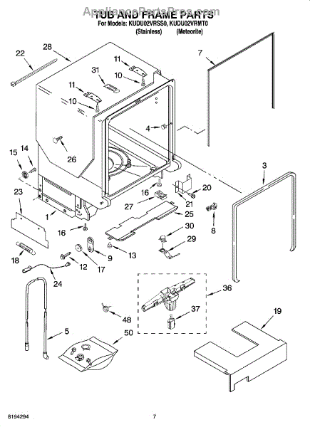 Parts for Kitchenaid KUDU02VRSS0: 07 - Tub And Frame Parts