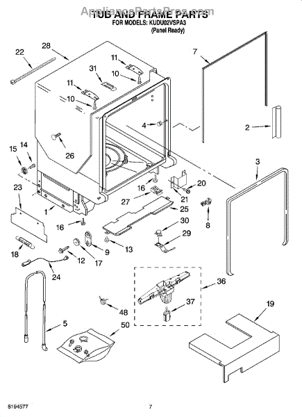 Parts for Kitchenaid KUDU02VSPA3: 07 - Tub And Frame Parts