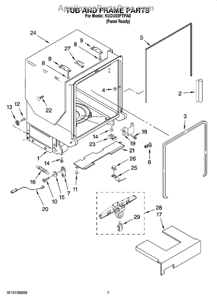 The Gasket is an OEM part for Whirlpool dishwashers. This gasket seals the gap between the dishwasher door and the main tub, preventing water from leaking out during the wash cycle. It ensures a watertight seal that helps maintain the efficiency and performance of the dishwasher.