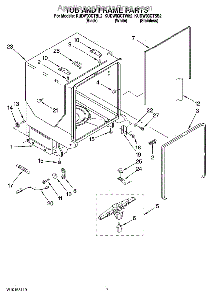 The Gasket is an OEM part for Whirlpool dishwashers. This gasket seals the gap between the dishwasher door and the main tub, preventing water from leaking out during the wash cycle. It ensures a watertight seal that helps maintain the efficiency and performance of the dishwasher.