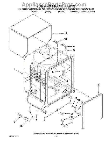 Parts for Whirlpool WDF310PCAW0: 05 - Tub And Frame Parts