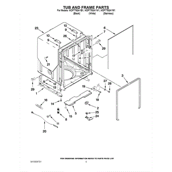 The primary causes of wear or damage to the tub wheel assembly can include regular use, excessive load on the racks, or accidental force applied when loading or unloading dishes. These can lead to broken wheels or dislodged fittings, necessitating replacement to maintain functionality.