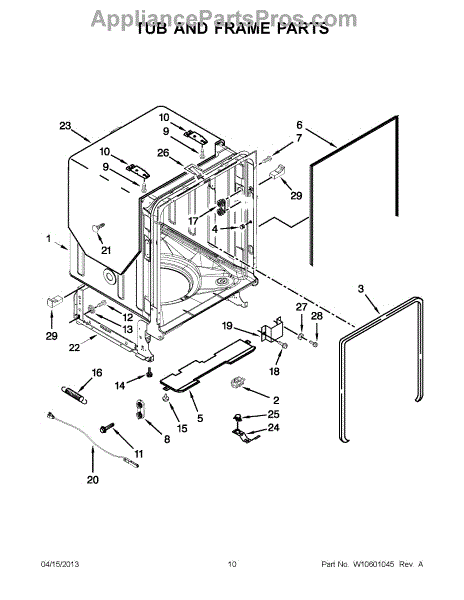 The primary causes of wear or damage to the tub wheel assembly can include regular use, excessive load on the racks, or accidental force applied when loading or unloading dishes. These can lead to broken wheels or dislodged fittings, necessitating replacement to maintain functionality.