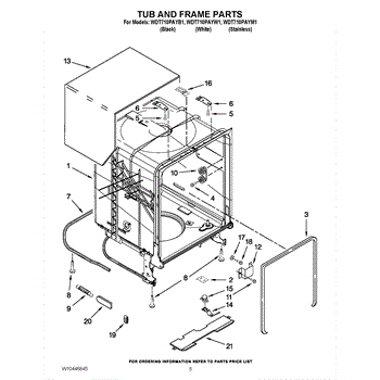 Parts for Whirlpool WDT710PAYM1: 05 - Tub And Frame Parts