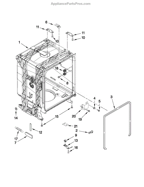 Complete dishwasher tub assembly. Replaces cracked, leaking, or damaged tubs that cannot be reliably repaired due to heat and detergent exposure.