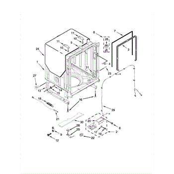Protective cover that encloses your dishwasher's control box and internal wiring. Replace if cracked, broken, or missing to shield electronics from dust.