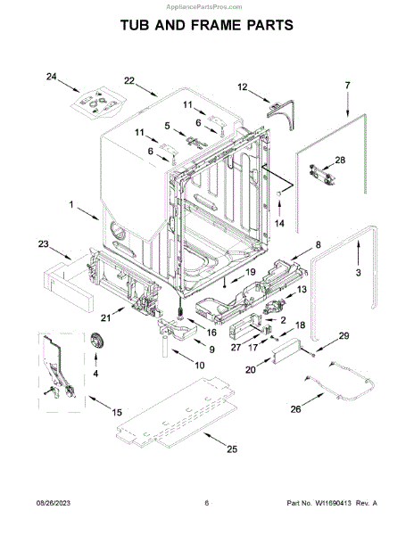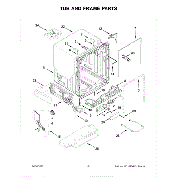 The Tub Gasket is an OEM part for Whirlpool dishwashers. It seals the space between the washer tub and the surrounding door frame to prevent leaks. During wash cycles, water, heat, and detergent can degrade this rubber gasket material over time.