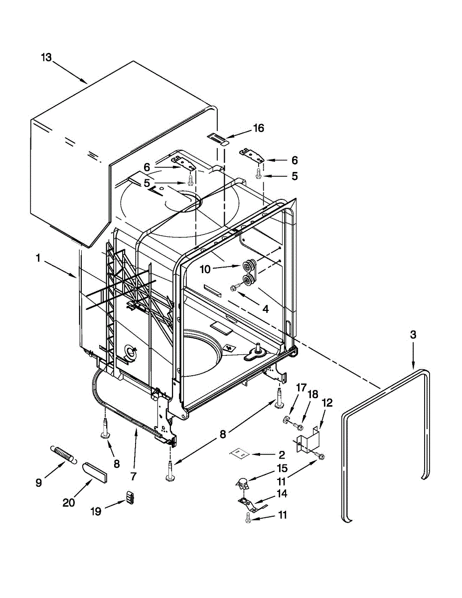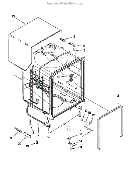 Replace your dishwasher's main tub assembly if cracked, warped, or leaking. This structural component forms the interior wash chamber of your unit.