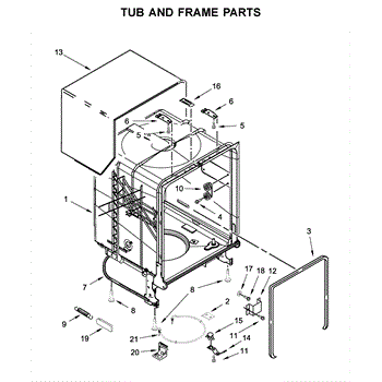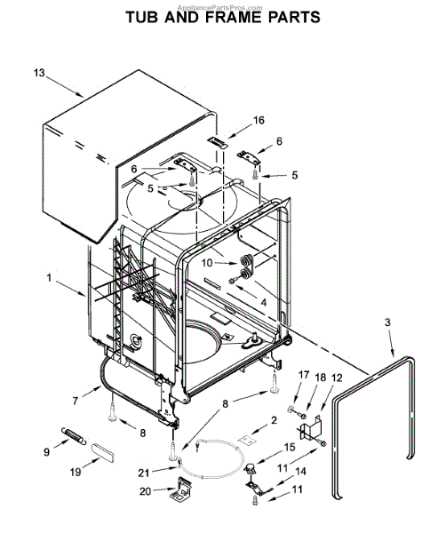 Replace your dishwasher's main tub assembly if cracked, warped, or leaking. This structural component forms the interior wash chamber of your unit.