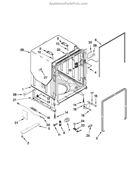If your dishwasher door drops, slams, or feels heavy, the door balance mount may be broken. This side-frame bracket anchors the spring system.