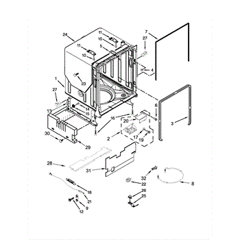 This door latch strike is the catch mounted at the top of the dishwasher tub opening. It provides a secure engagement point for the door latch, helping the door close firmly so cycles can start and run properly. What it does: