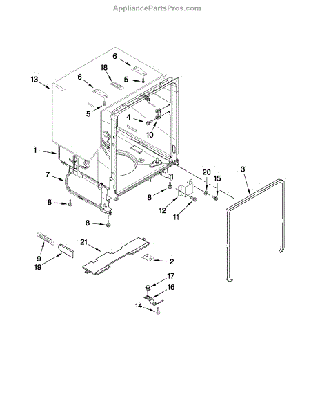 Complete dishwasher tub assembly. Replaces cracked, leaking, or damaged tubs that cannot be reliably repaired due to heat and detergent exposure.