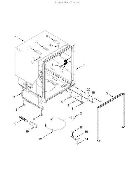 Complete dishwasher tub assembly. Replaces cracked, leaking, or damaged tubs that cannot be reliably repaired due to heat and detergent exposure.