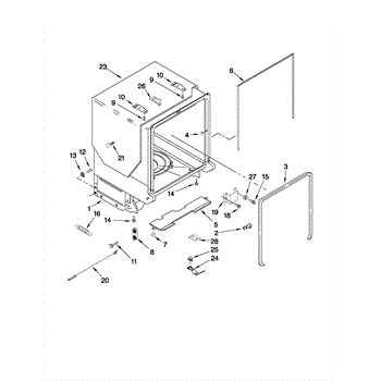 Seals the dishwasher tub to the cabinet opening, reducing noise and preventing gaps. Replace if worn, damaged, or missing for proper fit and sound control.