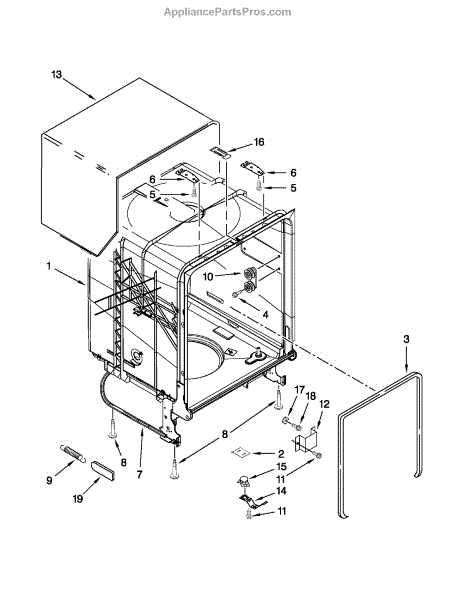 Replace your dishwasher's main tub assembly if cracked, warped, or leaking. This structural component forms the interior wash chamber of your unit.