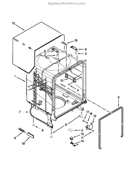 Replace your dishwasher's main tub assembly if cracked, warped, or leaking. This structural component forms the interior wash chamber of your unit.