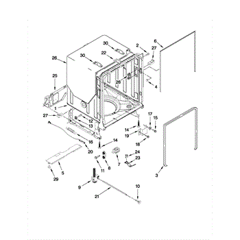 Positions and supports the dishwasher tank assembly to maintain proper alignment. Replace if worn, cracked, or missing to restore correct spacing.