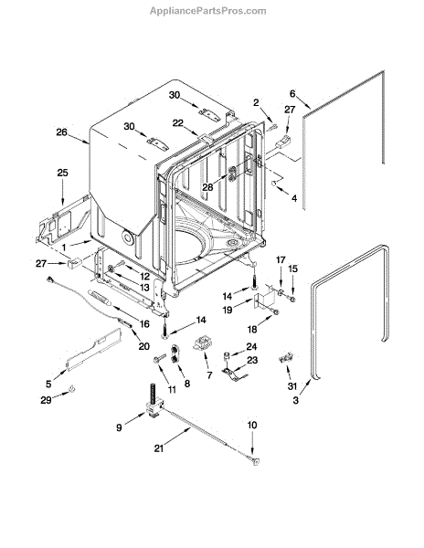 If your dishwasher door drops, slams, or feels heavy, the door balance mount may be broken. This side-frame bracket anchors the spring system.