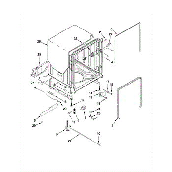 The primary causes of wear or damage to the tub wheel assembly can include regular use, excessive load on the racks, or accidental force applied when loading or unloading dishes. These can lead to broken wheels or dislodged fittings, necessitating replacement to maintain functionality.